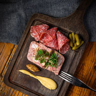 乾式臘腸選用法國優質豬肉手工製作,完美展現法式熟食的精髓。